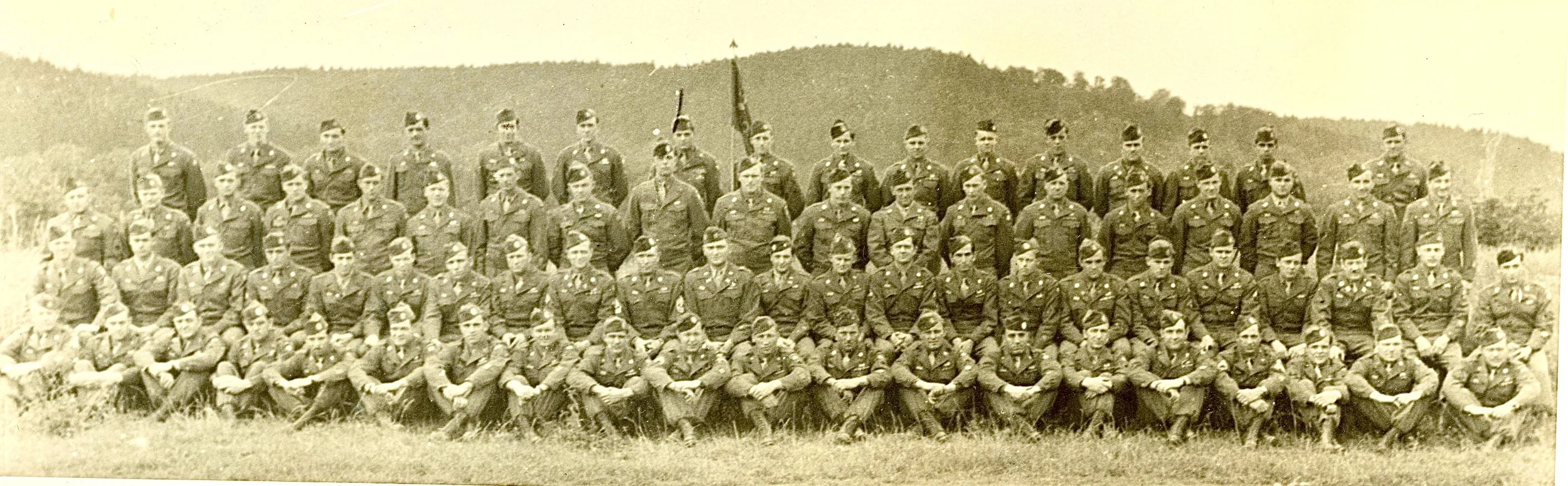 S SGT Fred Conrad (3rd row standing far left) - Group HQ Battery Photo - June 1945 - Epinal, France