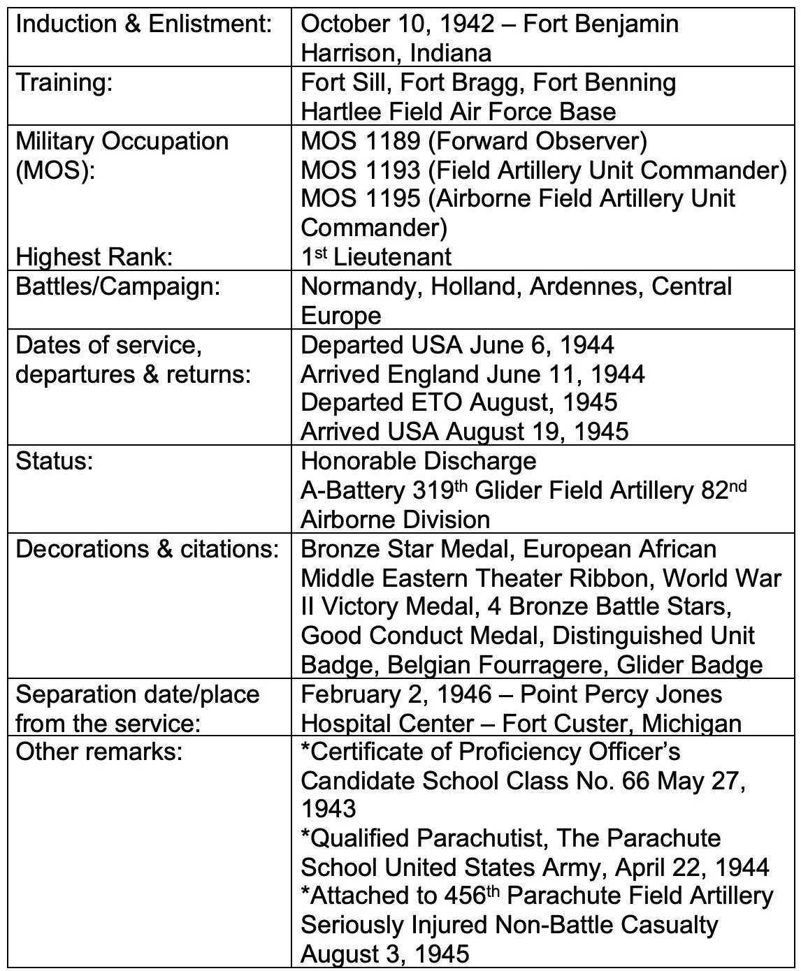 “01182430. For heroic conduct in action from 8 October, 1944, to 15 October, 1944, in Holland. On 14 October, 1944, in Holland, the company area in which 1st Lt. Mullen maintained his CP was subjected to intense harassing fire by enemy machine guns. 1st Lt. Mullen crept forward to the furthest outpost, which was the only spot to observe the fire, and neutralized the enemy machine gun fire. He was under enemy observation on his way out and on his return. This action not only silenced the machine gun but prevented many possible casualties. This is just one instance of many instances of similar action on 1st Lt. Mullen’s part. Such actions and endeavors by 1st Lt. Mullen reflect the highest credit upon himself and the military service. Entered Military service from Kentland, Indiana.”