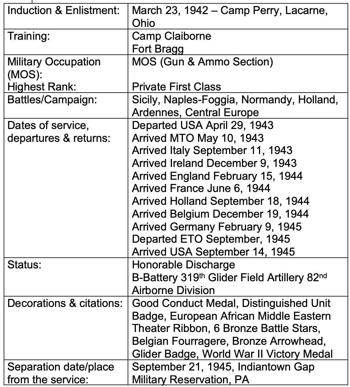 Private Paul Gubics - Headquarters Battery 319th Field Artillery Battalion 82nd Division Front row 2nd from left - Camp Claiborne - Group Battery Photo taken May 1942